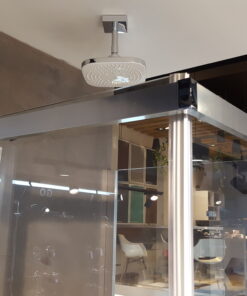 کابین دوش GIA از سر کابین های پر فروش و پرطرفدار شرکت افراست می باشد . در این مدل کابین دوش پروفیل بکار فته در سمت دیوار می باشد و بالای شیشه فقط ریل دارد در پایین کابین دوش هیچ ریلی مشاهده نمی شود و حسFRAMELESS بود کابین دو ش را به ببیننده القا می کند . در صورت تمایل حتی به جای پروفیل دیوای از بست هم برای FRAMELESS بودن می توان استفاده کرد . شیشه مورد استفاده د این کابین دوش 8 میل سوپر کلیر می باشد.